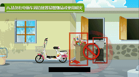 請勿将電(diàn)瓶(píng)車停放(fàng)在(zài)樓道(dào)、走(zǒu)道(dào)和(hé)樓梯(tī)间
