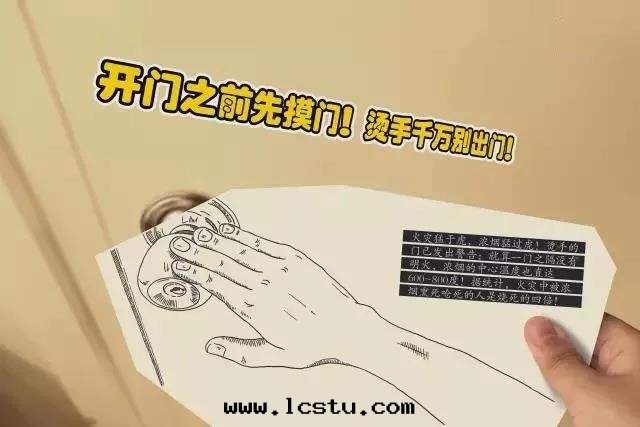 火災猛于(yú)虎,濃煙猛过(guò)虎 燙手(shǒu)的(de)門(mén)已发出(chū)警告 就(jiù)算一(yī)門(mén)之(zhī)隔沒(méi)有明(míng)火 濃煙的(de)中(zhōng)心(xīn)温(wēn)度(dù)也(yě)直(zhí)达(dá)600-800度(dù) 據(jù)統計(jì) 火災中(zhōng)被(bèi)濃煙熏死嗆死的(de)人是(shì)烧死的(de)四(sì)倍