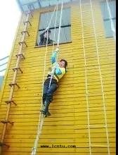 樓层(céng)低(dī)的(de)利用(yòng)窗(chuāng)戶逃生(shēng)。在(zài)火场(chǎng)受困时(shí),大(dà)多(duō)數人可(kě)采用(yòng)这(zhè)个(gè)辦(bàn)法(fǎ)。前(qián)提(tí)条(tiáo)件(jiàn)是(shì)火勢不(bù)大(dà),沒(méi)有蔓延到(dào)整个(gè)單元(yuán)住宅(zhái),同(tóng)时(shí)較熟悉室(shì)内情(qíng)況,具體(tǐ)做法(fǎ)是(shì):将绳(shéng)索(无绳(shéng)索可(kě)用(yòng)床(chuáng)單或(huò)窗(chuāng)帘(lián)撕成(chéng)布(bù)条(tiáo))一(yī)端系(xì)于(yú)窗(chuāng)戶橫框(或(huò)室(shì)内其(qí)他(tā)固定(dìng)構件(jiàn))上(shàng),另(lìng)一(yī)端系(xì)于(yú)小孩或(huò)老(lǎo)人的(de)两(liǎng)腋和(hé)腹部(bù),将其(qí)沿窗(chuāng)放(fàng)至(zhì)地(dì)面(miàn)或(huò)下(xià)层(céng)窗(chuāng)口(kǒu),破窗(chuāng)入(rù)室(shì)從通(tòng)道(dào)疏散(sàn),其(qí)他(tā)人可(kě)沿绳(shéng)索滑下(xià)。注意(yì):三(sān)层(céng)樓以(yǐ)上(shàng)不(bù)建議用(yòng)此(cǐ)方(fāng)法(fǎ)逃生(shēng)。