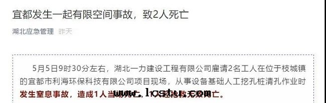夏季有限空(kōng)间作(zuò)業事(shì)故易发高(gāo)发,請注意(yì)作(zuò)業安(ān)全(quán) 5月(yuè)30日(rì)7时(shí)30分(fēn)許,湖(hú)北(běi)省(shěng)航道(dào)工程有限公司(國(guó)企)所(suǒ)屬嶽羅河(hé)勞务队(湖(hú)北(běi)海(hǎi)鑫达(dá)勞务有限公司)在(zài)靈璧縣(xiàn)靈城(chéng)鎮(zhèn)實(shí)施倒虹(hóng)吸井作(zuò)業时(shí),1名(míng)工人進(jìn)入(rù)井内模闆拆除施工时(shí)暈厥,之(zhī)後(hòu)2名(míng)工人自(zì)发下(xià)井搶救时(shí)也(yě)发生(shēng)暈厥情(qíng)況,3人均重度(dù)昏迷。送醫搶救无效後(hòu),3人于(yú)12时(shí)前(qián)先(xiān)後(hòu)死亡,初步判斷为井下(xià)沼气(qì)中(zhōng)毒導致(zhì)。