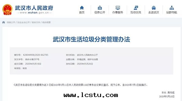 | 武漢市(shì)生(shēng)活垃圾分(fēn)類(lèi)管(guǎn)理(lǐ)辦(bàn)法(fǎ)》出(chū)台(tái),7月(yuè)1日(rì)起(qǐ)施行 |