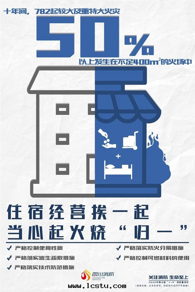 警示案(àn)例 2015年(nián)1月(yuè)14日(rì),浙江省(shěng)台(tái)州市(shì)玉(yù)环(huán)縣(xiàn)玉(yù)城(chéng)街(jiē)道(dào)解(jiě)放(fàng)塘社區(qū)一(yī)小區(qū)发生(shēng)火災,过(guò)火面(miàn)積80平方(fāng)米(mǐ),造成(chéng)8人死亡,3人受傷,直(zhí)接财産損失2万(wàn)元(yuán)。起(qǐ)火原因(yīn)为該樓沿外(wài)牆(qiáng)搭建的(de)簡易停車棚内的(de)電(diàn)動(dòng)自(zì)行車電(diàn)气(qì)線(xiàn)路故障引燃可(kě)燃物(wù)所(suǒ)致(zhì)。 2017年(nián)2月(yuè)16日(rì),福建省(shěng)漳州市(shì)芗城(chéng)區(qū)金(jīn)源廣场(chǎng)旁邊(biān)高(gāo)坑村路口(kǒu)一(yī)店(diàn)面(miàn)发生(shēng)火災,过(guò)火面(miàn)積60平方(fāng)米(mǐ),造成(chéng)6人死亡,2人受傷。起(qǐ)火原因(yīn)为電(diàn)動(dòng)車充電(diàn)时(shí)電(diàn)气(qì)線(xiàn)路故障所(suǒ)致(zhì)。 2018年(nián)3月(yuè)29日(rì),福建省(shěng)泉(quán)州市(shì)晉江陳埭鎮(zhèn)湖(hú)中(zhōng)村一(yī)民(mín)房(fáng)发生(shēng)火災,过(guò)火面(miàn)積28平方(fāng)米(mǐ),造成(chéng)4人死亡,4人受傷,直(zhí)接财産損失5.7万(wàn)元(yuán)。起(qǐ)火原因(yīn)为一(yī)层(céng)樓梯(tī)间停放(fàng)的(de)4号(hào)電(diàn)動(dòng)車電(diàn)气(qì)線(xiàn)路短(duǎn)路引燃周邊(biān)可(kě)燃物(wù)所(suǒ)致(zhì)。 2018年(nián)12月(yuè)2日(rì),雲(yún)南(nán)省(shěng)昆明(míng)市(shì)西(xī)山(shān)區(qū)福海(hǎi)街(jiē)道(dào)船房(fáng)社區(qū)一(yī)民(mín)房(fáng)发生(shēng)火災,过(guò)火面(miàn)積171平方(fāng)米(mǐ),造成(chéng)9人死亡,2人受傷,直(zhí)接财産損失13万(wàn)元(yuán)。起(qǐ)火原因(yīn)为租戶停放(fàng)在(zài)室(shì)内的(de)電(diàn)動(dòng)自(zì)行車蓄電(diàn)池連(lián)接線(xiàn)和(hé)蓄電(diàn)池固定(dìng)壓条(tiáo)壓合部(bù)位(wèi)漏電(diàn)並(bìng)産生(shēng)高(gāo)温(wēn),導致(zhì)電(diàn)動(dòng)自(zì)行車燃烧,引燃周圍的(de)可(kě)燃物(wù)。 04“三(sān)合一(yī)”场(chǎng)所(suǒ)火災 數说(shuō)安(ān)全(quán) 十(shí)年(nián)间,全(quán)國(guó)共(gòng)发生(shēng)782起(qǐ)較大(dà)及(jí)重特(tè)大(dà)火災,50%以(yǐ)上(shàng)发生(shēng)在(zài)面(miàn)積不(bù)足400平方(fāng)米(mǐ)的(de)火场(chǎng)中(zhōng),卻造成(chéng)了(le)平均每起(qǐ)案(àn)件(jiàn)5人遇難的(de)嚴重後(hòu)果(guǒ)。 这(zhè)些(xiē)籃球场(chǎng)般大(dà)小的(de)空(kōng)间,30%以(yǐ)上(shàng)具備一(yī)个(gè)共(gòng)同(tóng)点,同(tóng)时(shí)具備生(shēng)産、倉儲、經(jīng)營和(hé)住宿等不(bù)少(shǎo)于(yú)两(liǎng)个(gè)功能(néng)——“多(duō)功能(néng)”的(de)小空(kōng)间,隐藏着巨大(dà)的(de)安(ān)全(quán)隐患。