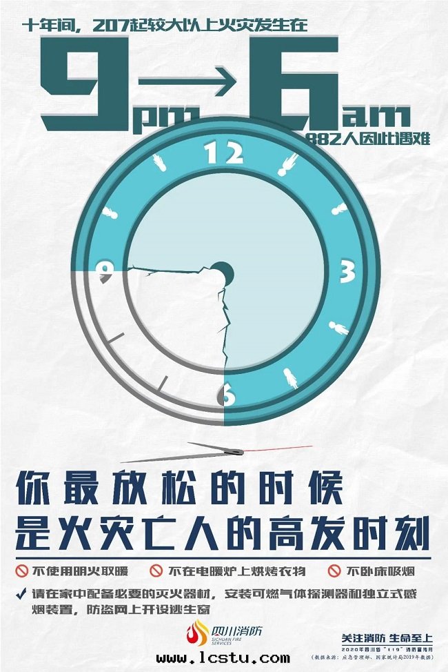 警示案(àn)例 2014年(nián)12月(yuè)26日(rì),安(ān)徽省(shěng)阜陽市(shì)颍州區(qū)王店(diàn)鎮(zhèn)一(yī)家(jiā)具加工作(zuò)坊发生(shēng)火災,过(guò)火面(miàn)積550平方(fāng)米(mǐ),造成(chéng)5人死亡,6人受傷,直(zhí)接财産損失69.9万(wàn)元(yuán)。起(qǐ)火建築一(yī)层(céng)用(yòng)于(yú)家(jiā)具加工和(hé)原料成(chéng)品儲存,二(èr)层(céng)用(yòng)于(yú)住宿生(shēng)活,三(sān)层(céng)閑置。 2016年(nián)11月(yuè)27日(rì),河(hé)北(běi)省(shěng)邯鄲市(shì)永年(nián)區(qū)曲陌鄉(xiāng)一(yī)超市(shì)发生(shēng)火災,过(guò)火面(miàn)積120平方(fāng)米(mǐ),造成(chéng)4人死亡,直(zhí)接财産損失79.3万(wàn)元(yuán)。起(qǐ)火原因(yīn)疑似使用(yòng)煤(méi)爐不(bù)慎引燃周圍紙(zhǐ)箱(xiāng)造成(chéng)火災。起(qǐ)火建築住宿與(yǔ)非(fēi)住宿部(bù)分(fēn)之(zhī)间未進(jìn)行防火分(fēn)隔。 2017年(nián)11月(yuè)18日(rì),北(běi)京(jīng)市(shì)大(dà)興區(qū)西(xī)紅(hóng)門(mén)鎮(zhèn)新(xīn)建二(èr)村的(de)一(yī)幢建築发生(shēng)火災,事(shì)故造成(chéng)19人死亡,8人受傷。起(qǐ)火原因(yīn)为地(dì)下(xià)冷庫制冷設備在(zài)调试过(guò)程中(zhōng),被(bèi)覆蓋在(zài)聚氨酯保温(wēn)材料内为冷庫壓縮冷凝机组供電(diàn)的(de)鋁(lǚ)芯電(diàn)缆(lǎn)電(diàn)气(qì)故障造成(chéng)短(duǎn)路,引燃周圍可(kě)燃物(wù)産生(shēng)一(yī)氧化(huà)碳等有毒有害煙气(qì)蔓延所(suǒ)致(zhì)。 2018年(nián)2月(yuè)16日(rì),廣東(dōng)省(shěng)清(qīng)遠(yuǎn)市(shì)清(qīng)城(chéng)區(qū)石(dàn)角(jiǎo)鎮(zhèn)一(yī)垃圾站发生(shēng)火災,过(guò)火面(miàn)積200平方(fāng)米(mǐ),造成(chéng)9人死亡,1人重傷,直(zhí)接财産損失20.3万(wàn)元(yuán)。起(qǐ)火原因(yīn)为煙花(huā)爆竹(zhú)回(huí)收(shōu)物(wù)陰燃所(suǒ)致(zhì)。 05夜(yè)间火災 數说(shuō)安(ān)全(quán) 过(guò)去(qù)十(shí)年(nián)的(de)782起(qǐ)較大(dà)以(yǐ)上(shàng)火災中(zhōng),共(gòng)有207起(qǐ)发生(shēng)在(zài)晚(wǎn)9点至(zhì)次(cì)日(rì)6点,882人因(yīn)此(cǐ)遇難。 晚(wǎn)9点到(dào)次(cì)日(rì)6点是(shì)冬季大(dà)火的(de)高(gāo)发时(shí)段(duàn),凌晨2点到(dào)4点间尤其(qí)危險。冬季晝短(duǎn)夜(yè)长(cháng)、天气(qì)寒冷,人们(men)多(duō)在(zài)室(shì)内,早(zǎo)睡晚(wǎn)起(qǐ),警覺性(xìng)低(dī),濃煙中(zhōng)驚醒的(de)人们(men),很難快(kuài)速反(fǎn)应,因(yīn)而(ér)夜(yè)间火災大(dà)多(duō)傷亡慘重。事(shì)實(shí)上(shàng),夜(yè)间火災一(yī)直(zhí)是(shì)四(sì)季消防之(zhī)頑疾。