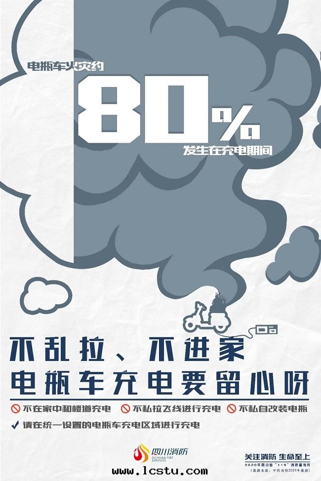 警示案(àn)例 2015年(nián)3月(yuè)17日(rì),上(shàng)海(hǎi)市(shì)浦東(dōng)新(xīn)區(qū)東(dōng)集路200号(hào)一(yī)物(wù)流配送中(zhōng)心(xīn)发生(shēng)火災,过(guò)火面(miàn)積約9000平方(fāng)米(mǐ),直(zhí)接财産損失4556.6万(wàn)元(yuán)。起(qǐ)火原因(yīn)为電(diàn)气(qì)線(xiàn)路短(duǎn)路所(suǒ)致(zhì)。 2017年(nián)12月(yuè)30日(rì),江西(xī)省(shěng)贛州市(shì)南(nán)康區(qū)唐江鎮(zhèn)一(yī)出(chū)租屋(wū)发生(shēng)火災,过(guò)火面(miàn)積約400平方(fāng)米(mǐ),造成(chéng)5人死亡,直(zhí)接财産損失約300万(wàn)元(yuán)。起(qǐ)火原因(yīn)为電(diàn)气(qì)線(xiàn)路短(duǎn)路引燃周邊(biān)可(kě)燃物(wù)。 2018年(nián)8月(yuè)25日(rì),黑(hēi)龍江省(shěng)哈爾濱市(shì)松北(běi)區(qū)一(yī)酒(jiǔ)店(diàn)发生(shēng)重大(dà)火災事(shì)故,过(guò)火面(miàn)積約400平方(fāng)米(mǐ),造成(chéng)20人死亡,23人受傷,直(zhí)接财産損失2504餘万(wàn)元(yuán)。起(qǐ)火原因(yīn)为頂棚懸挂的(de)風(fēng)机盤管(guǎn)机组電(diàn)气(qì)線(xiàn)路短(duǎn)路,形成(chéng)高(gāo)温(wēn)電(diàn)弧,引燃周圍塑料綠(lǜ)植装飾材料並(bìng)蔓延成(chéng)災。 2019年(nián)6月(yuè)11日(rì),雲(yún)南(nán)省(shěng)大(dà)理(lǐ)鎮(zhèn)银(yín)蒼社區(qū)叶榆路一(yī)民(mín)房(fáng)发生(shēng)火災,过(guò)火面(miàn)積約230平方(fāng)米(mǐ),造成(chéng)6人死亡,直(zhí)接财産損失34万(wàn)元(yuán)。起(qǐ)火原因(yīn)为貨架底部(bù)旁的(de)锂電(diàn)池在(zài)充電(diàn)过(guò)程中(zhōng)短(duǎn)路起(qǐ)火,引燃周圍可(kě)燃物(wù)。 03電(diàn)瓶(píng)車火災 數说(shuō)安(ān)全(quán) 调查发現(xiàn),近(jìn)年(nián)来(lái)多(duō)數電(diàn)瓶(píng)車火災事(shì)故均发生(shēng)在(zài)充電(diàn)过(guò)程。數據(jù)顯示,全(quán)國(guó)電(diàn)瓶(píng)車火災案(àn)例,約80%发生(shēng)在(zài)充電(diàn)过(guò)程,而(ér)亡人火災幾(jǐ)乎全(quán)部(bù)发生(shēng)在(zài)充電(diàn)时(shí)段(duàn)。