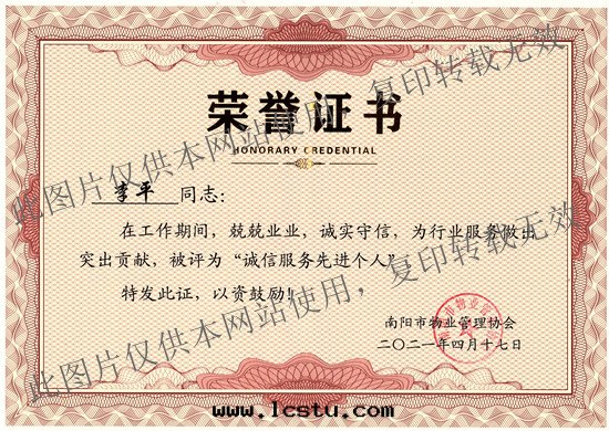 2020年(nián)誠信(xìn)服(fú)务先(xiān)進(jìn)个(gè)人--李平