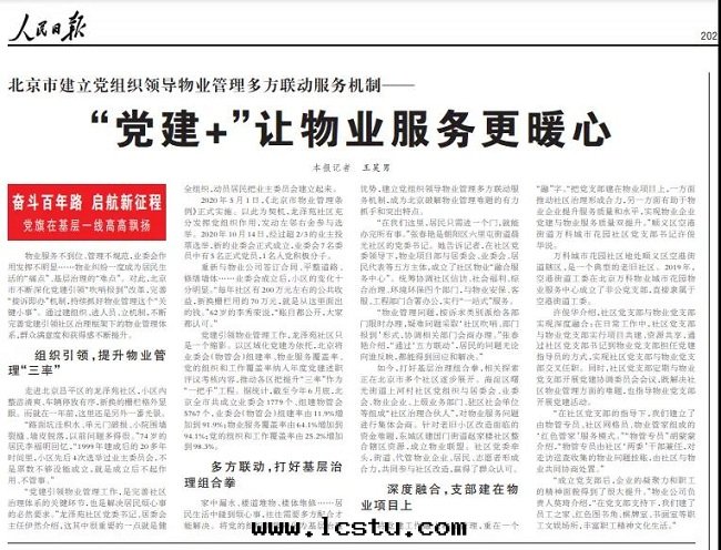 北(běi)京(jīng)市(shì)建立黨组織領導物(wù)業管(guǎn)理(lǐ)多(duō)方(fāng)聯動(dòng)服(fú)务机制——“黨建+”讓物(wù)業服(fú)务更暖心(xīn)